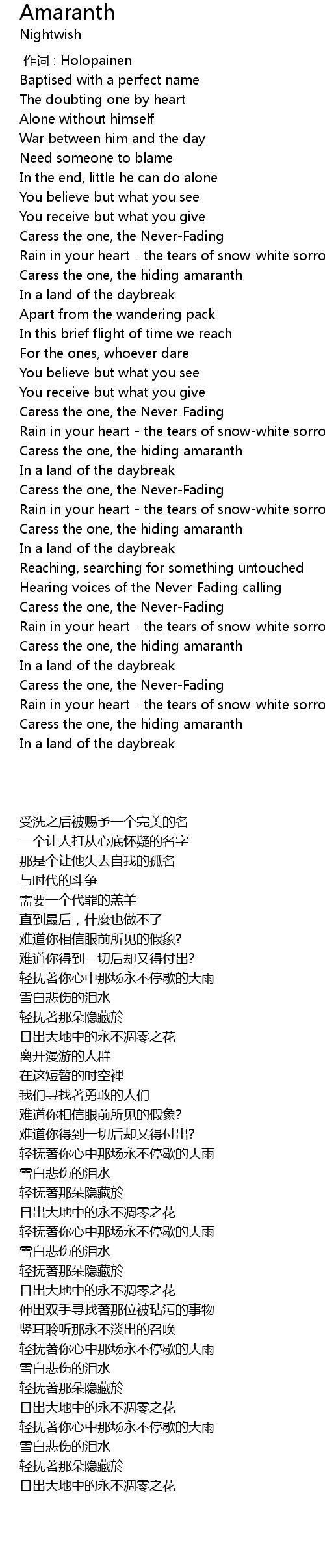 | [03:23.000] | Caress the one, the hiding amaranth |