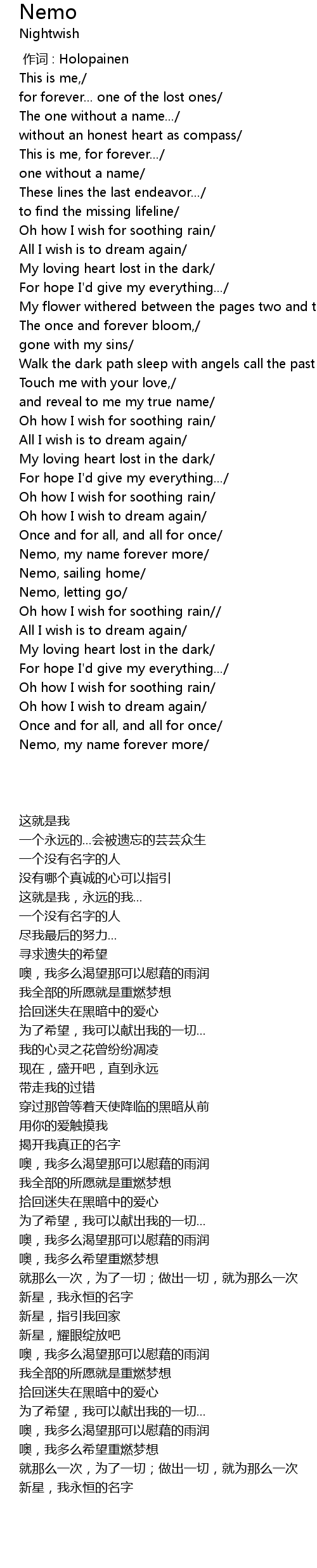 | [03:43.450] | Nemo, my name forever more/ |
