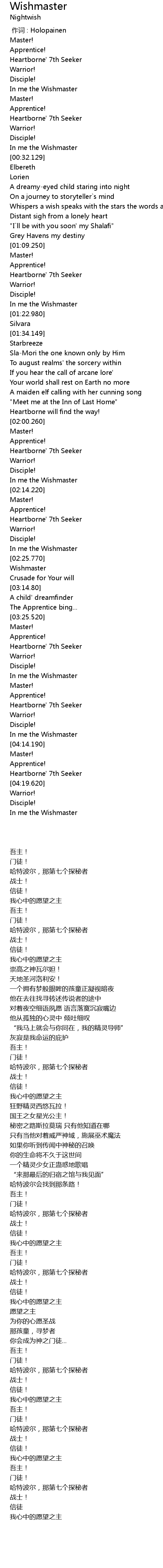 | [00:29.880] | In me the Wishmaster |