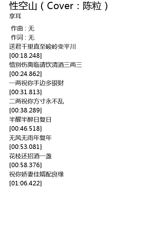 | [00:59.823] | zhù nǐ jiāo qī jiā xù pèi liáng yuán |