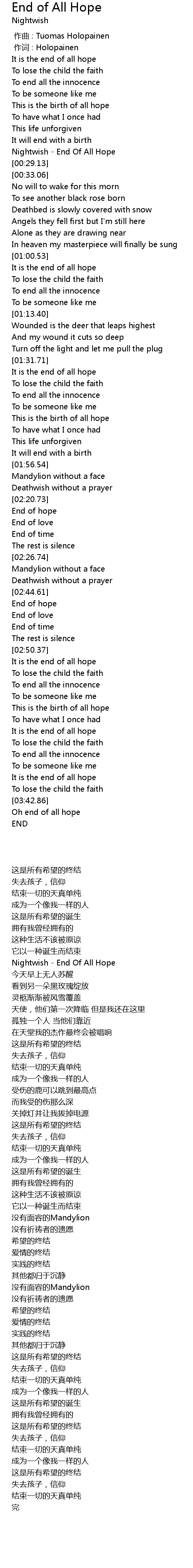 | [00:00.00] | 作曲 : Tuomas Holopainen |
