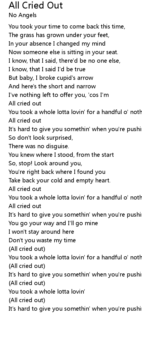 All Cried Out Lyrics
