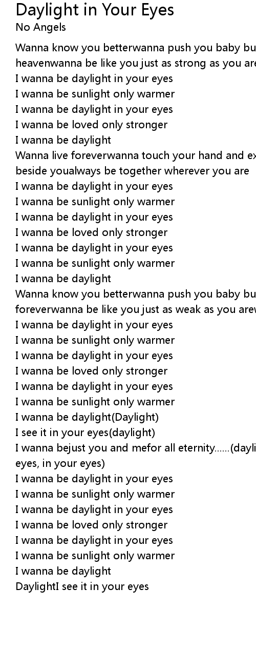 I wanna be daylight in your eyes |