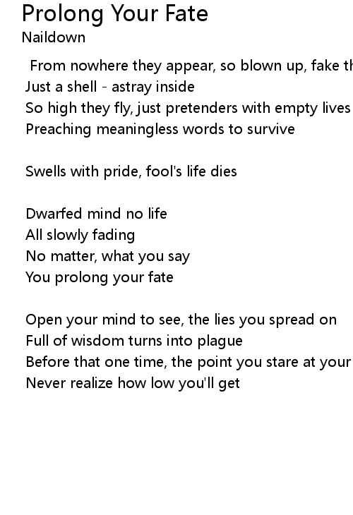 | You prolong your fate | |