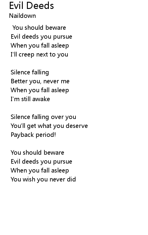 | Evil deeds you pursue | |