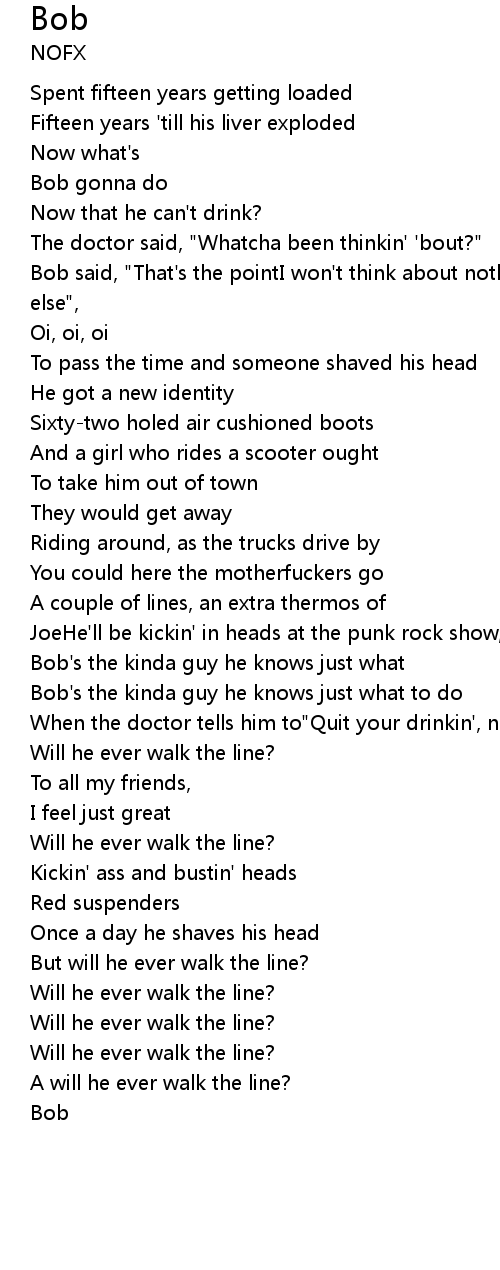 Bob said, "That's the pointI won't think about nothingNow I gotta do something else", |