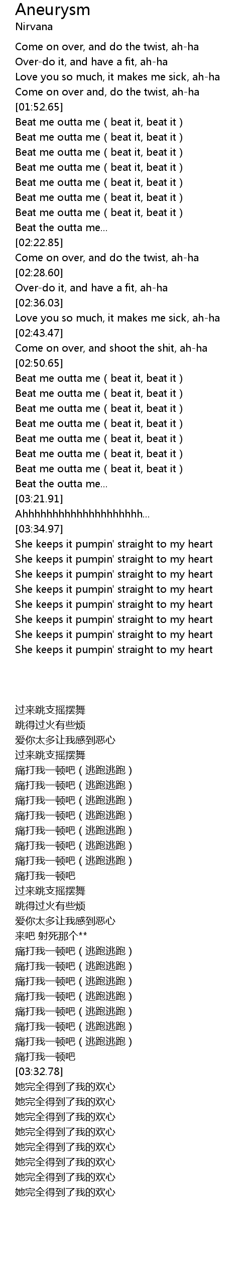 | [02:54.28] | Beat me outta me beat it, beat it |