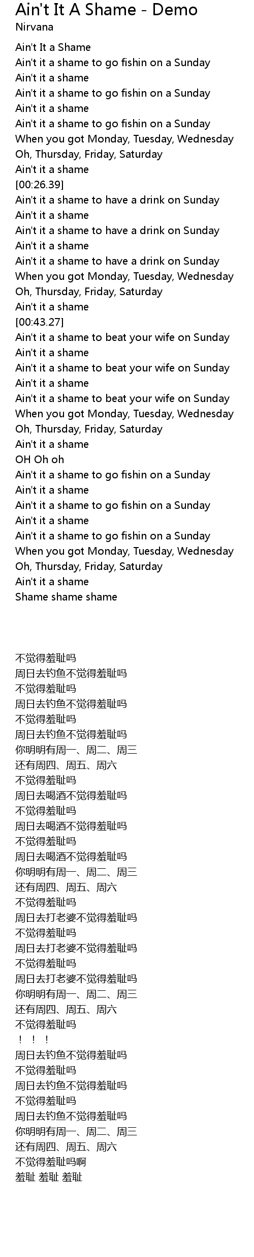 Ain't it a shame to beat your wife on Sunday |