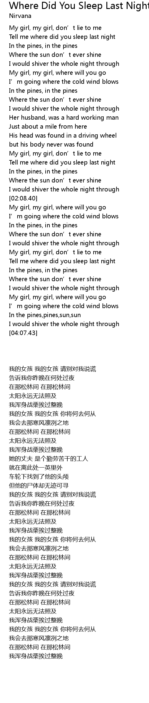 | Song | Where Did You Sleep Last Night - Solo Acoustic Demo |