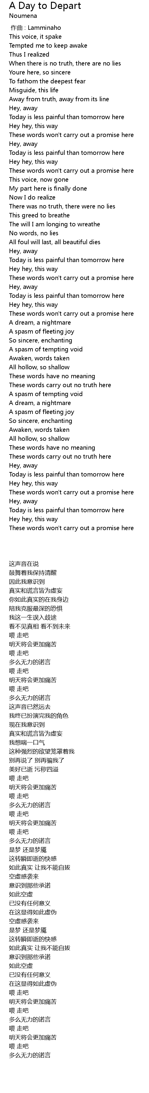 | [00:32.93] | When there is no truth, there are no lies |