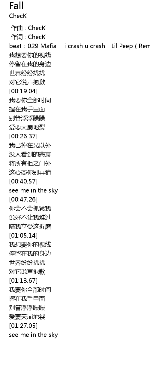 | [00:02.90] | beat:029 Mafia - i crash u crash - Lil Peep ( Remake) |