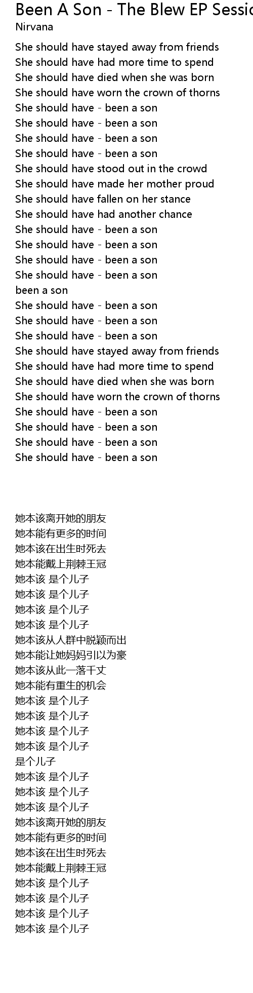 Been A Son - The Blew EP Session Of September Of 89 Lyrics