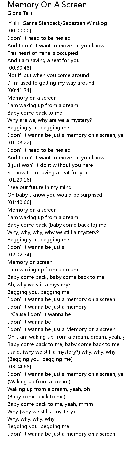| [02:44.17] | I don’t wanna be just a Memory on a screen |