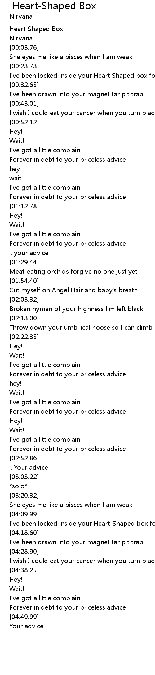 I've been locked inside your Heart-Shaped box for weeks |