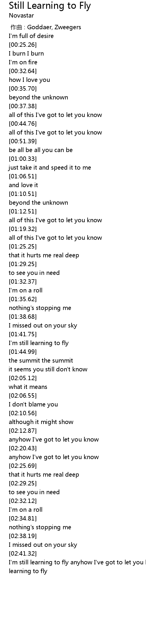 | [02:42.98] | I' m still learning to fly anyhow I' ve got to let you know I' m still learning to fly |
