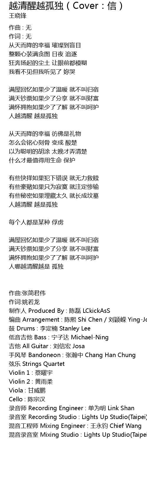 | 混音工程师 Mixing Engineer : 王永钧 Chief Wang | |