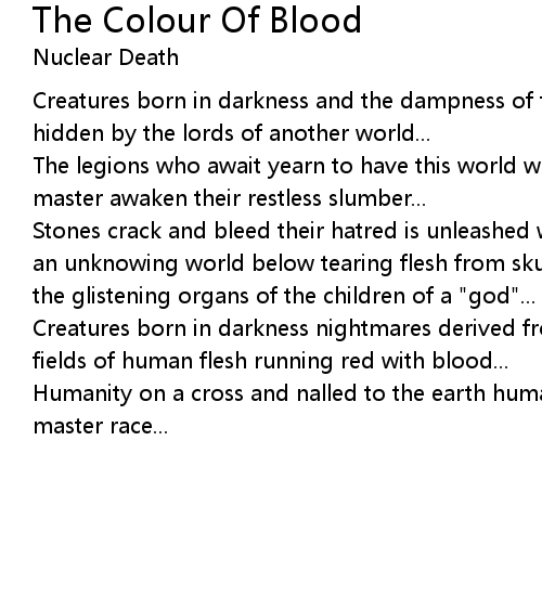 Creatures born in darkness nightmares derived from the haunts of man reaping fields of human flesh running red with blood... |