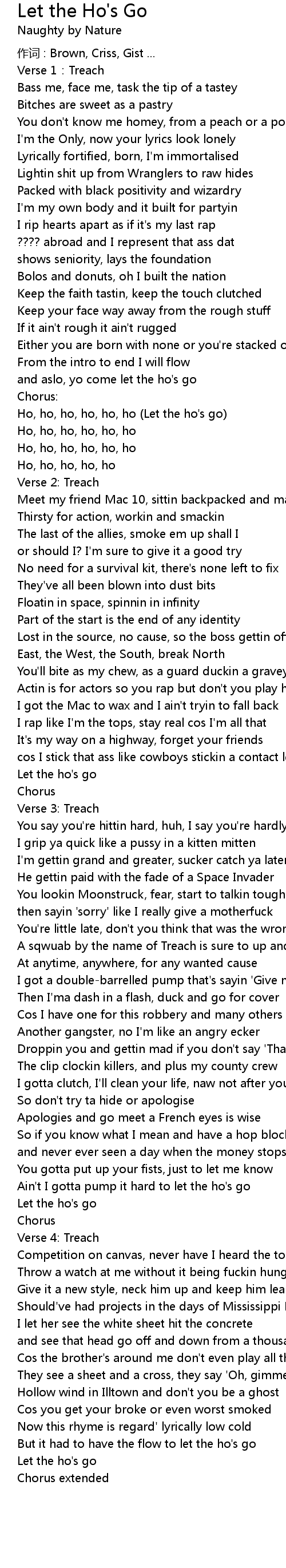 | Ho, ho, ho, ho, ho, ho Let the ho' s go | |