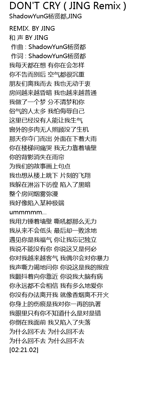 | [00:01.000] | 作词 : ShadowYunG杨贤都 |
