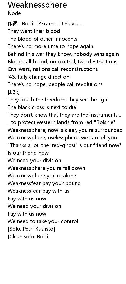 | Song | Weaknessphere |