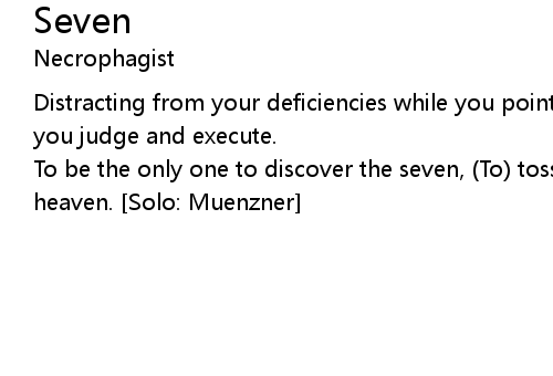 | To be the only one to discover the seven, (To) toss open and pass the gates to heaven. [Solo: Muenzner] |
