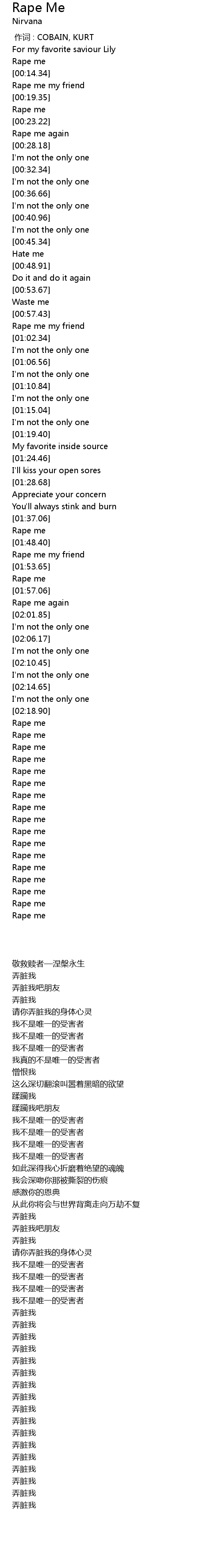 | [01:58.77] | Rape me again |