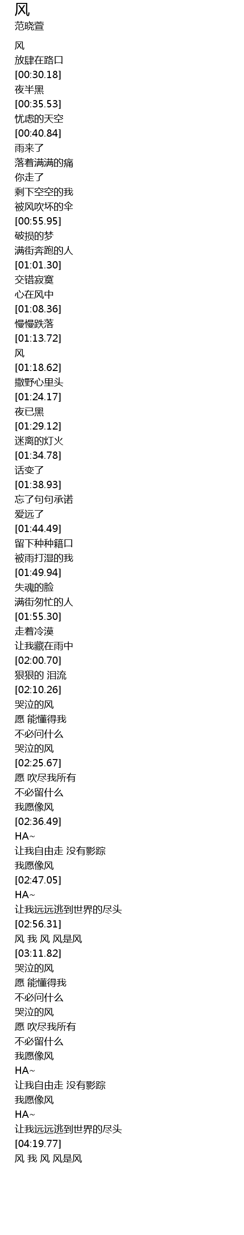 | [04:22.37] | fēng wǒ fēng fēng shì fēng |