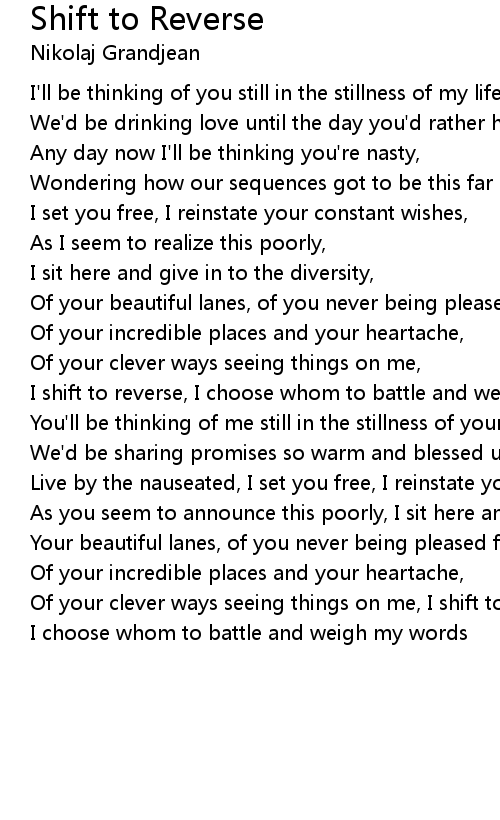 Of your clever ways seeing things on me, I shift to reverse, |