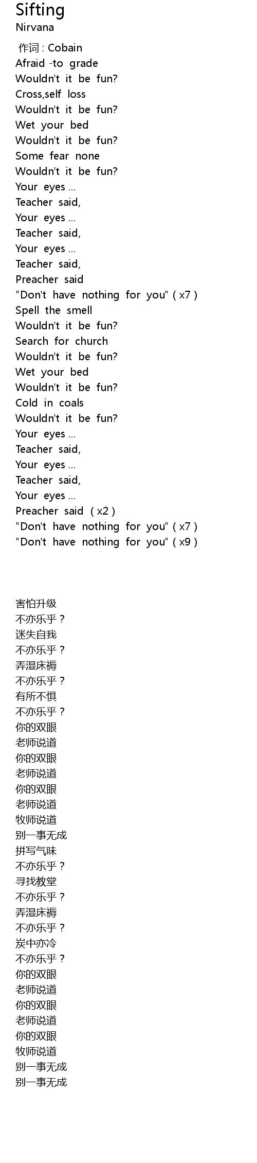 | [00:00.00] | zuò cí : Cobain |