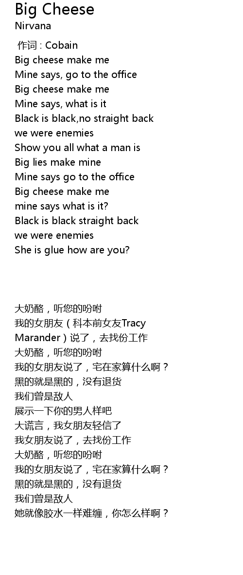 | [00:34.360] | Big cheese make me |