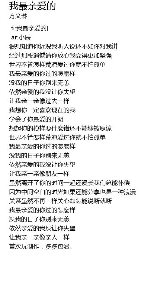 | [00:44.175] | 我最亲爱的你过的怎麼样 |