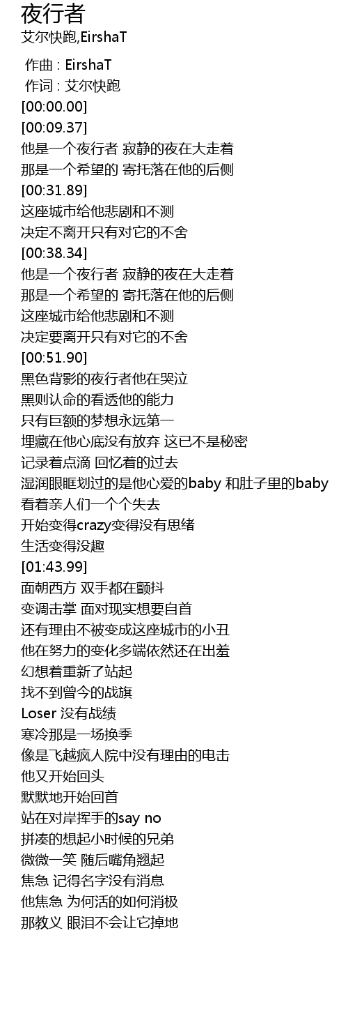 | [00:39.02] | 他是一个夜行者 寂静的夜在大走着 |
