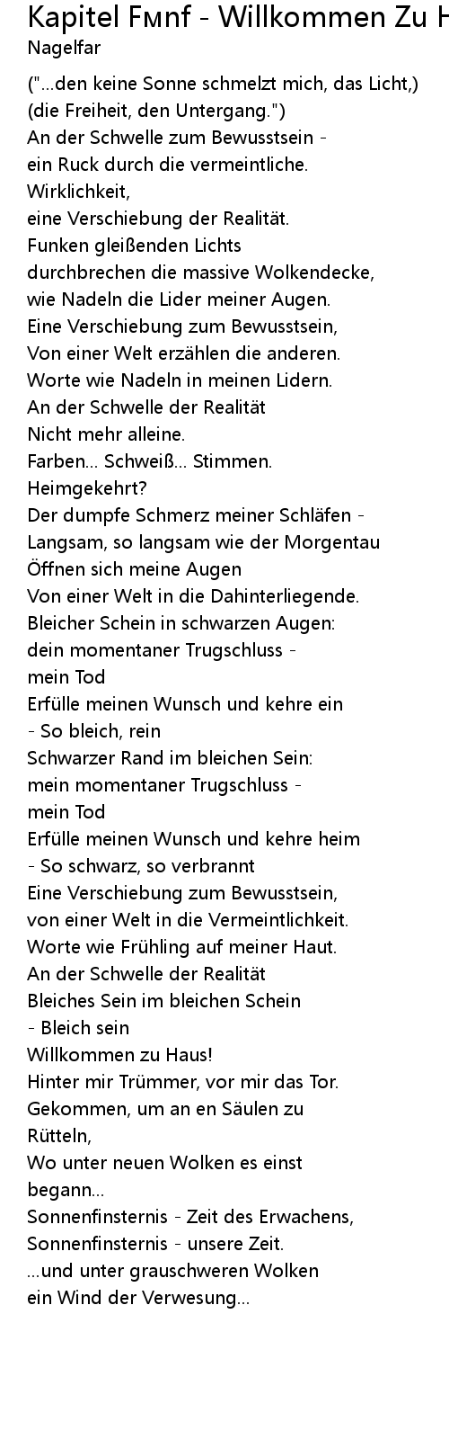 | Song | Kapitel Fмnf - Willkommen Zu Haus… |
