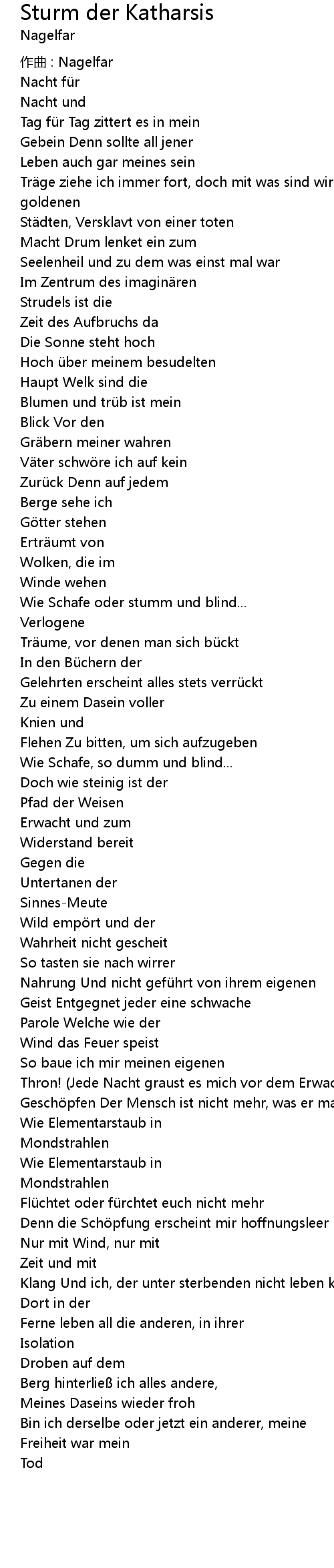 | Song | Sturm der Katharsis |