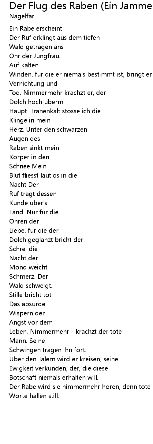 Der Rabe wird sie nimmermehr horen, denn tote |