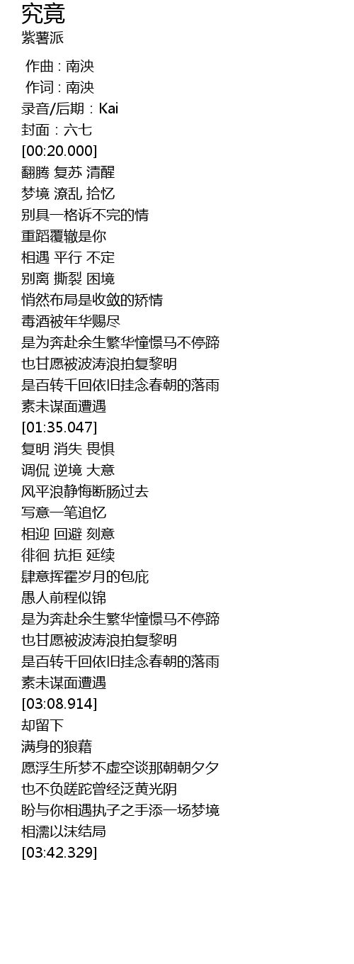 | [00:00.000] | 作曲 : 南泱 |