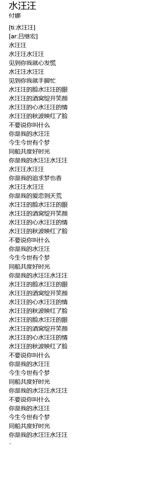 | [02:31.286] | 你是我的水汪汪水汪汪 |