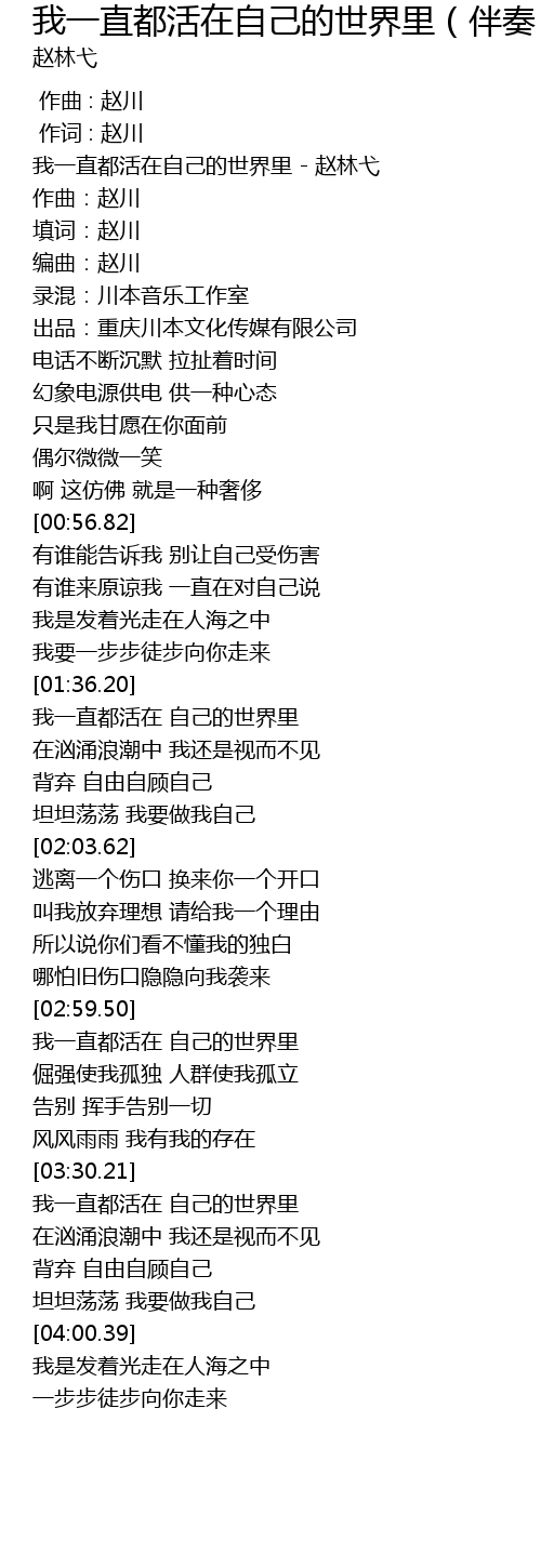 | [00:01.61] | 我一直都活在自己的世界里 - 赵林弋 |