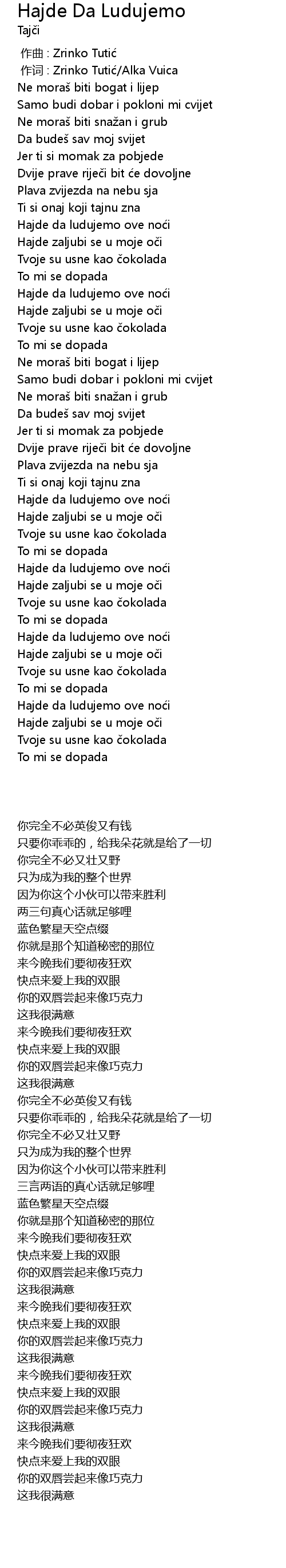 | [00:01.000] | zuò cí : Zrinko Tuti Alka Vuica |
