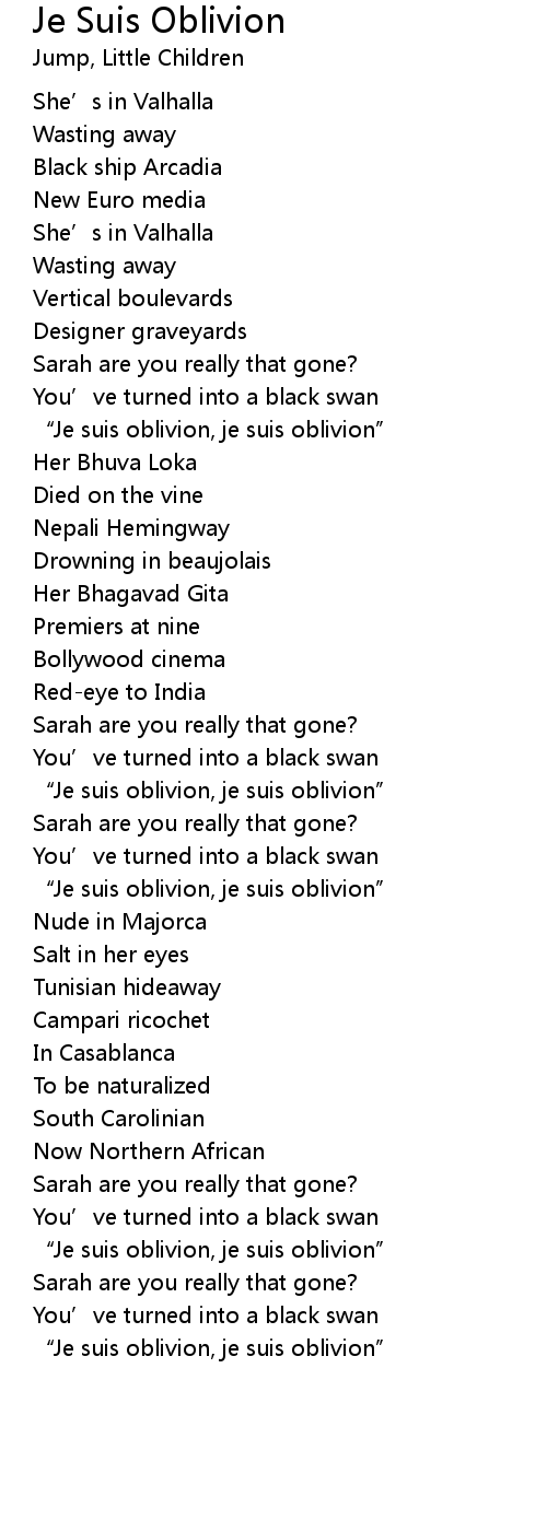 | [02:51.42] | “Je suis oblivion, je suis oblivion” |