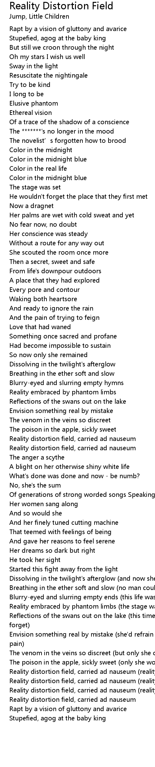 | [04:28.56] | Reality distortion field, carried ad nauseum (reality) |