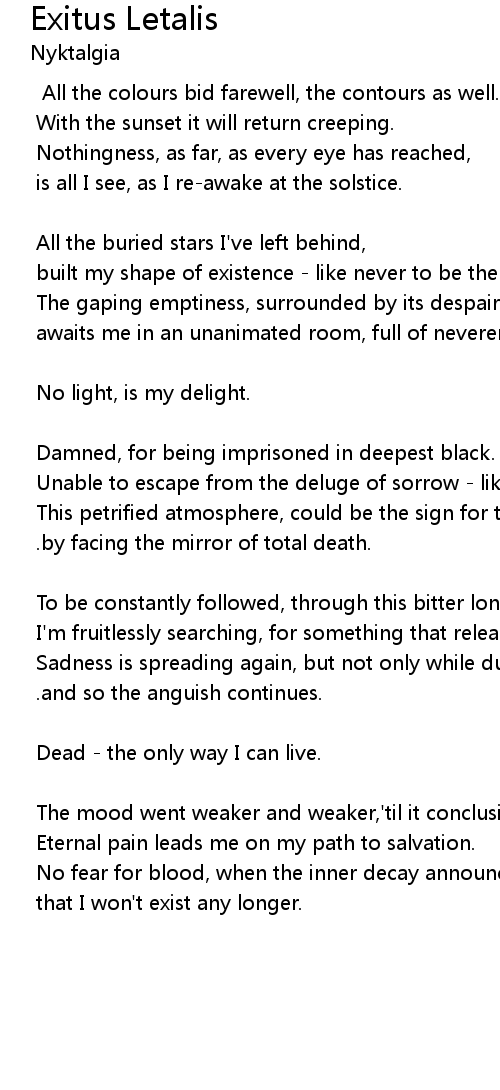 | Unable to escape from the deluge of sorrow - like onward to the gallows. | |