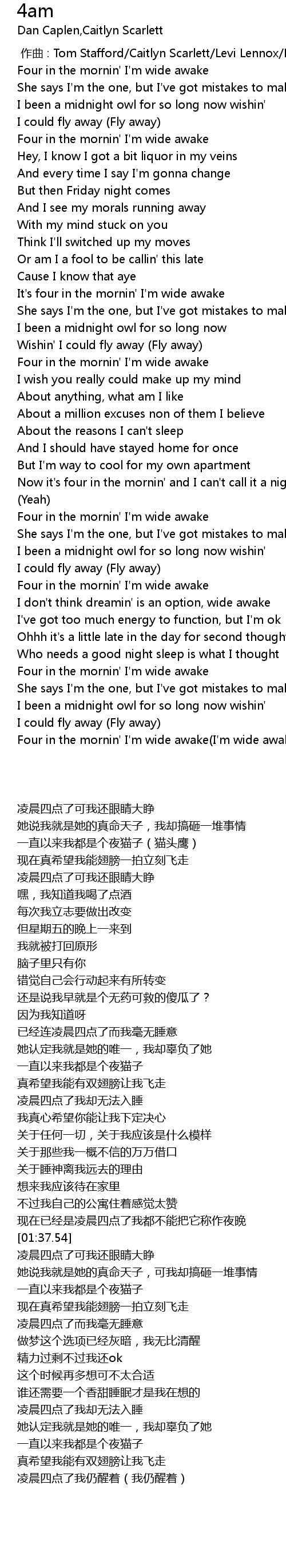 | [01:38.81] | Four in the mornin' I' m wide awake |