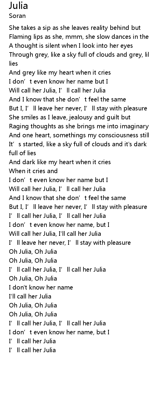 | [00:44.552] | Will call her Julia, I' ll call her Julia |