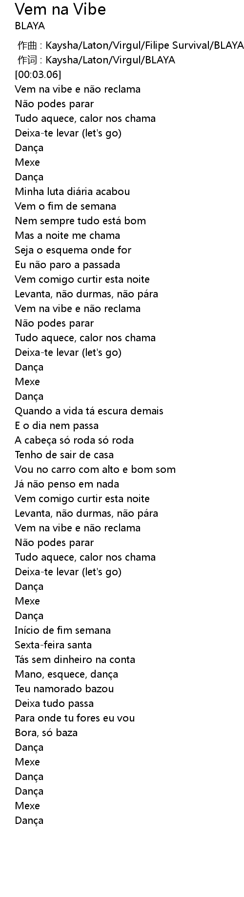 | [00:00.000] | 作曲 : Kaysha/Laton/Virgul/Filipe Survival/BLAYA |