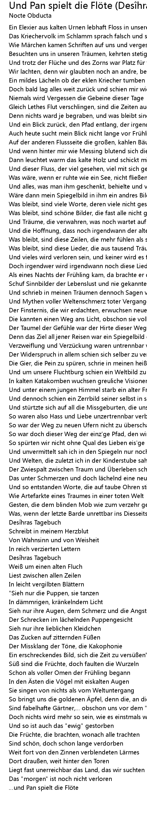 | Song | Und Pan spielt die Flöte (Desîhras Tagebuch Kapitel II) |