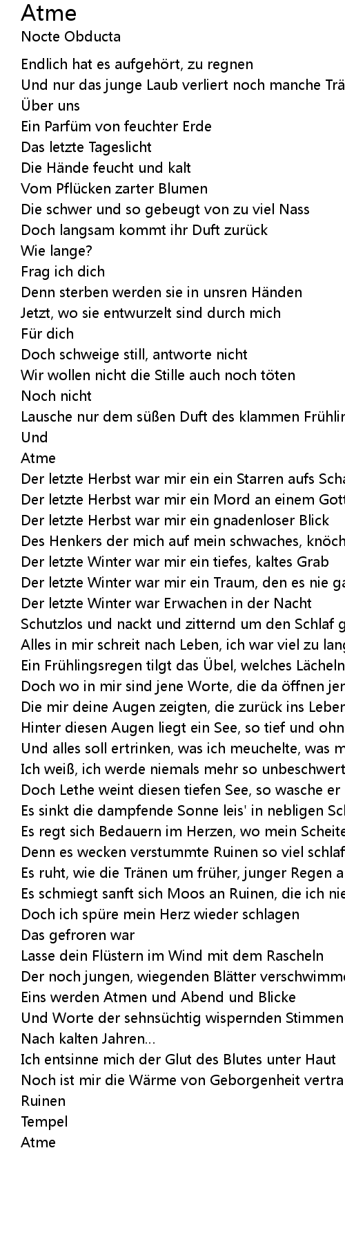 | Alles in mir schreit nach Leben, ich war viel zu lange tot | |