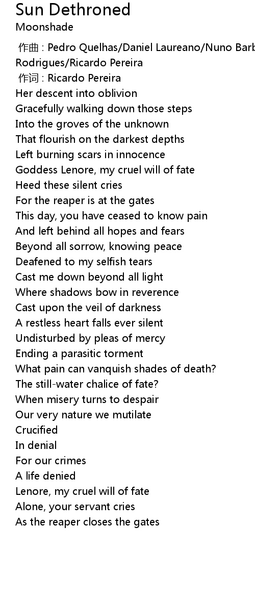 | [00:55.54] | Goddess Lenore, my cruel will of fate |
