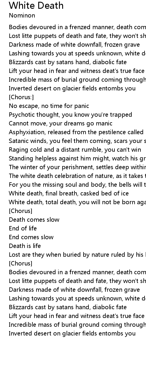 White death, final breath, casked bed of ice |