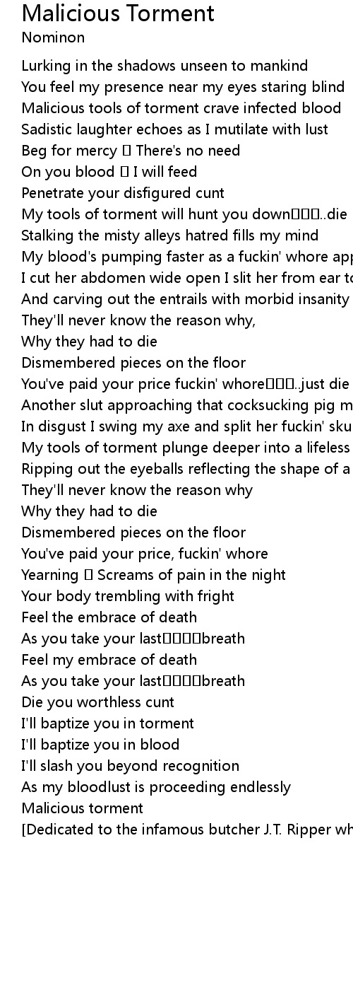 | [Dedicated to the infamous butcher J.T. Ripper who stalked the streets of London anno 1888] |